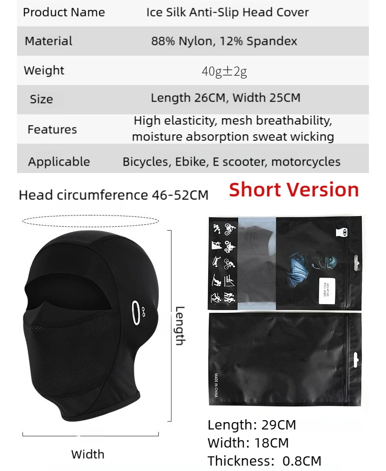 1 x Ice Silk Headgear (packed in resealable bag)